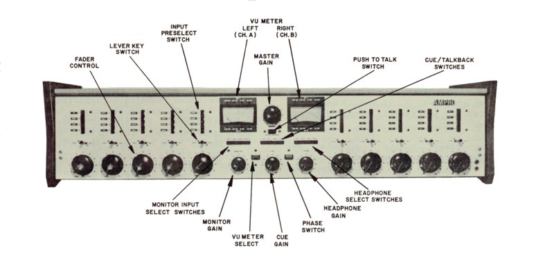 Broadcast Consoles What ever happened to Ampro and their line of consoles? Seems like you couldn't go into a station in the 70's or even the early 80's without seeing one of their very distinctive and rock-solid consoles. I remember these consoles in WOKK, WALT, and WMSB, to name a few stations. Word has it that KNOM had one as well. If you've got info on Ampro consoles or other vintage console models that you'd like to share with the world, drop me a line. Here's the Ampro AC-8 (from the original installation manual) Here's the LC-12, the linear-fader version of the AC-12: